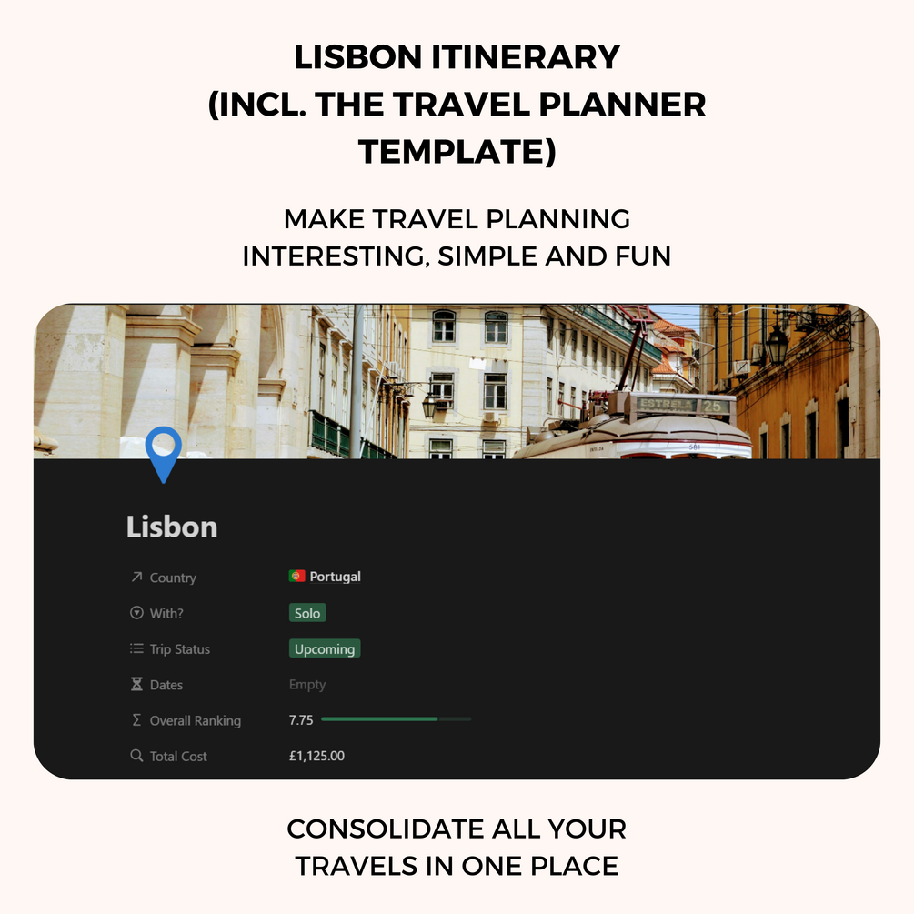 Get access to the LISBON itinerary as well as the TRAVEL PLANNER template so you can organise your own holidays!