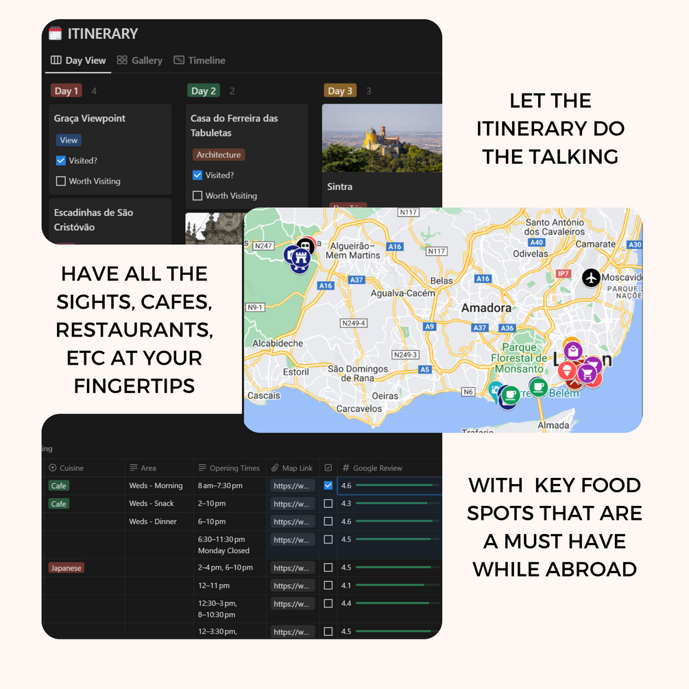 Get access to the LISBON itinerary as well as the TRAVEL PLANNER template so you can organise your own holidays!