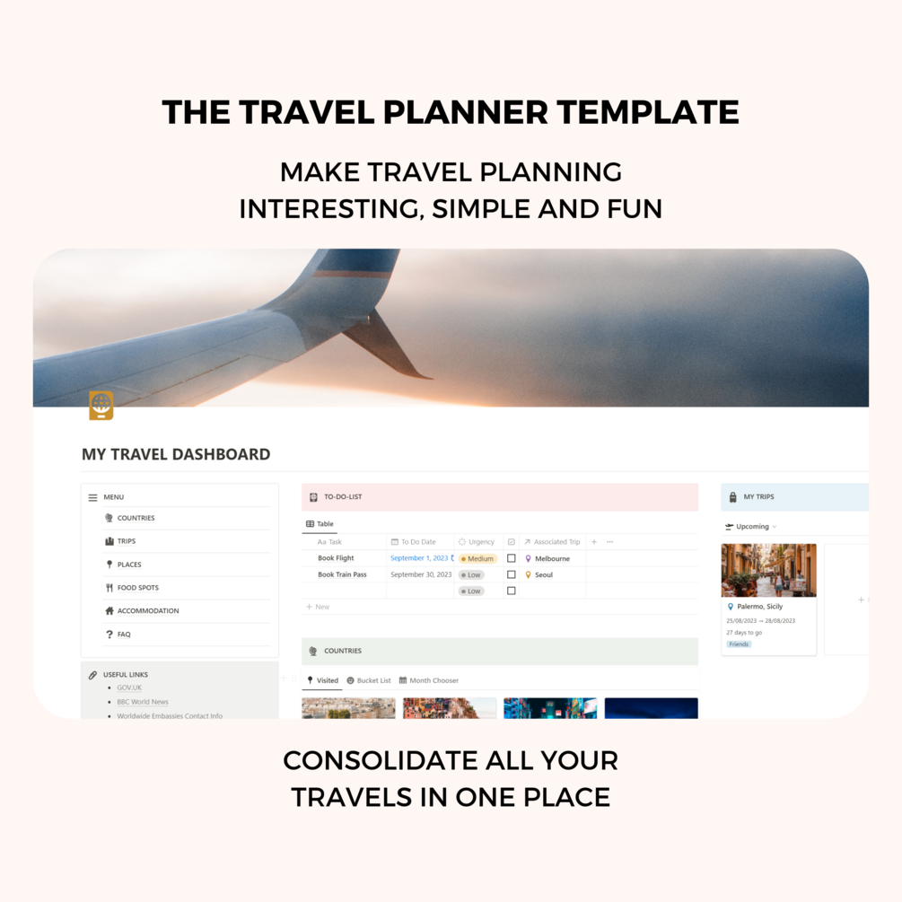 Plan easily with The Travel Planner for Notion making travel planning fun and less stressful.