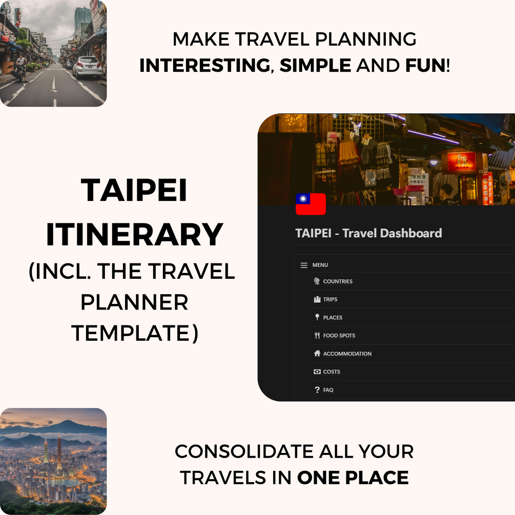 Get access to the TAIPEI itinerary as well as the TRAVEL PLANNER template so you can organise your own holidays!